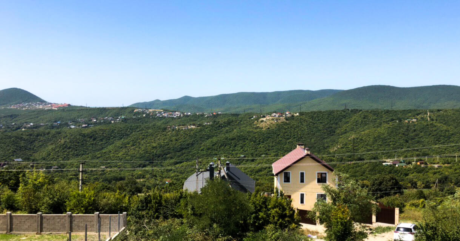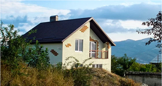 Дом расположен в очень красивом месте с видом на горы и открытое черное море. Однако, находится в 1 км от центра города и буквально в семи минутах езды от популярного пляжа п. Широкая балка и заповедника.