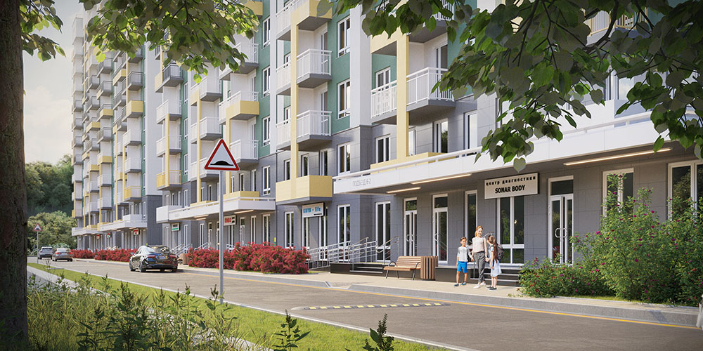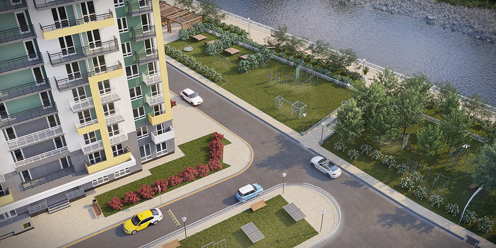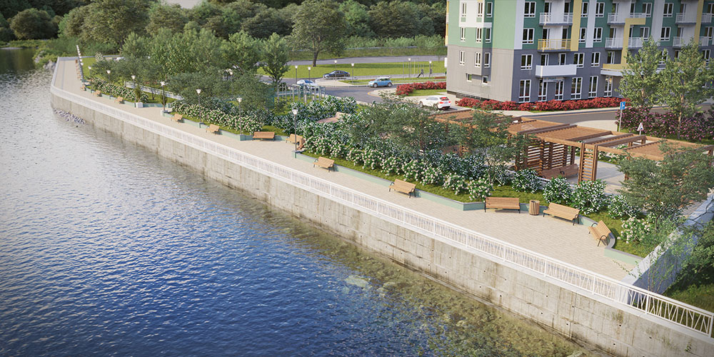 Равнинная местность располагает к прогулкам на собственной набережной. Развитая инфраструктура для комфортной жизни в шаговой доступности — магазины, школа, детский сад, аптеки и фитнес-центры. Детская и спортивная площадка станут местом притяжения для всей семьи.