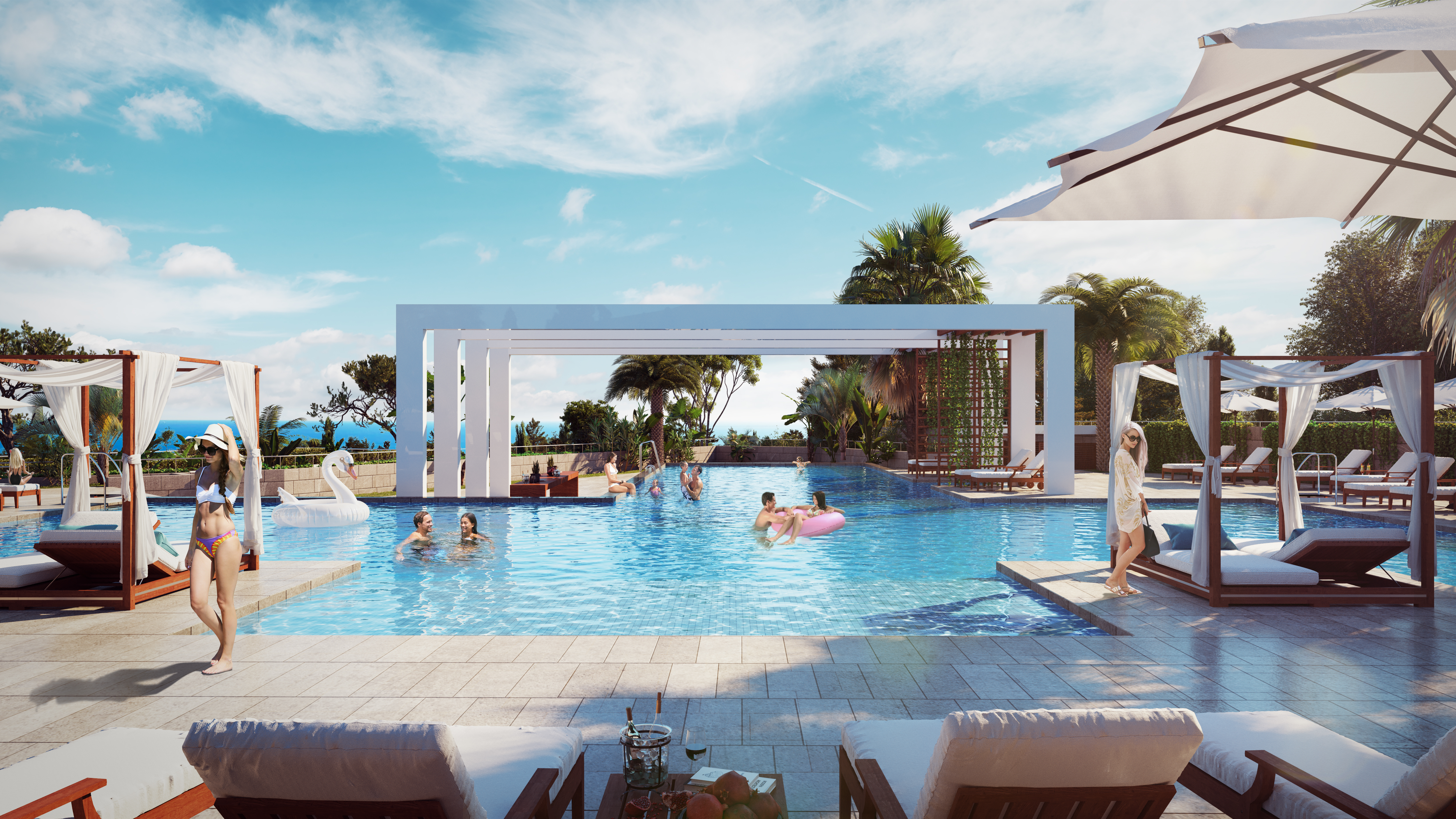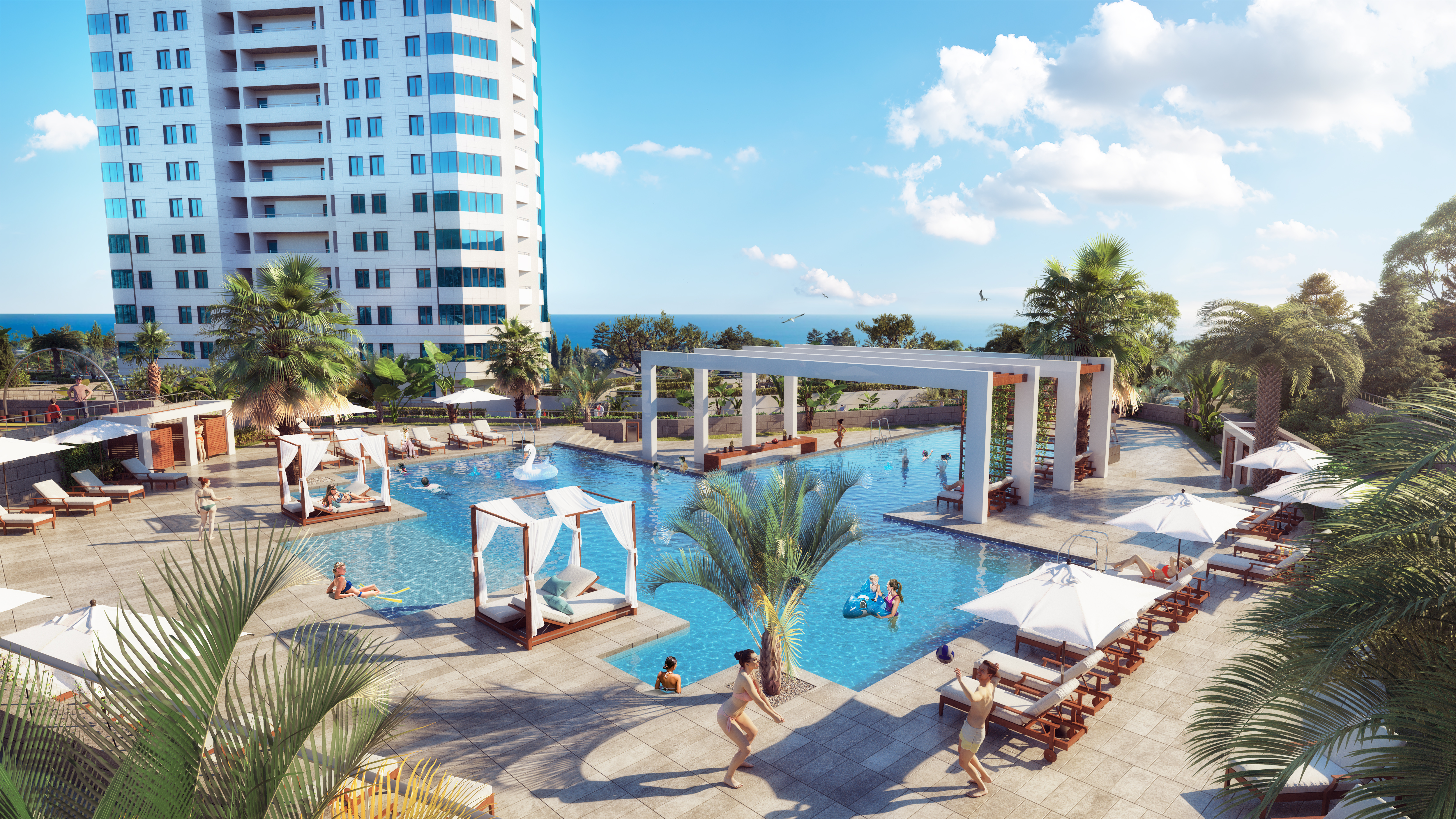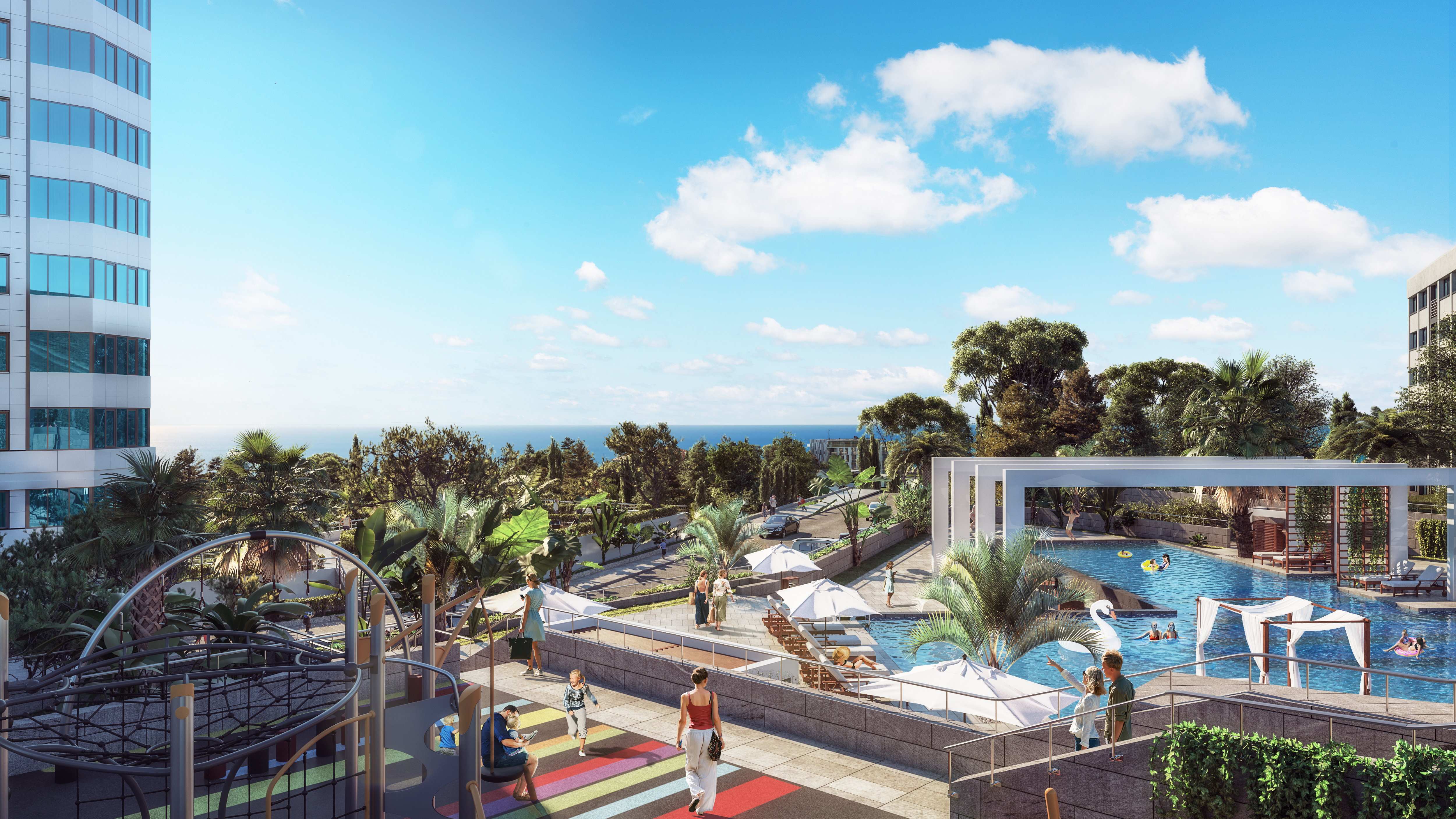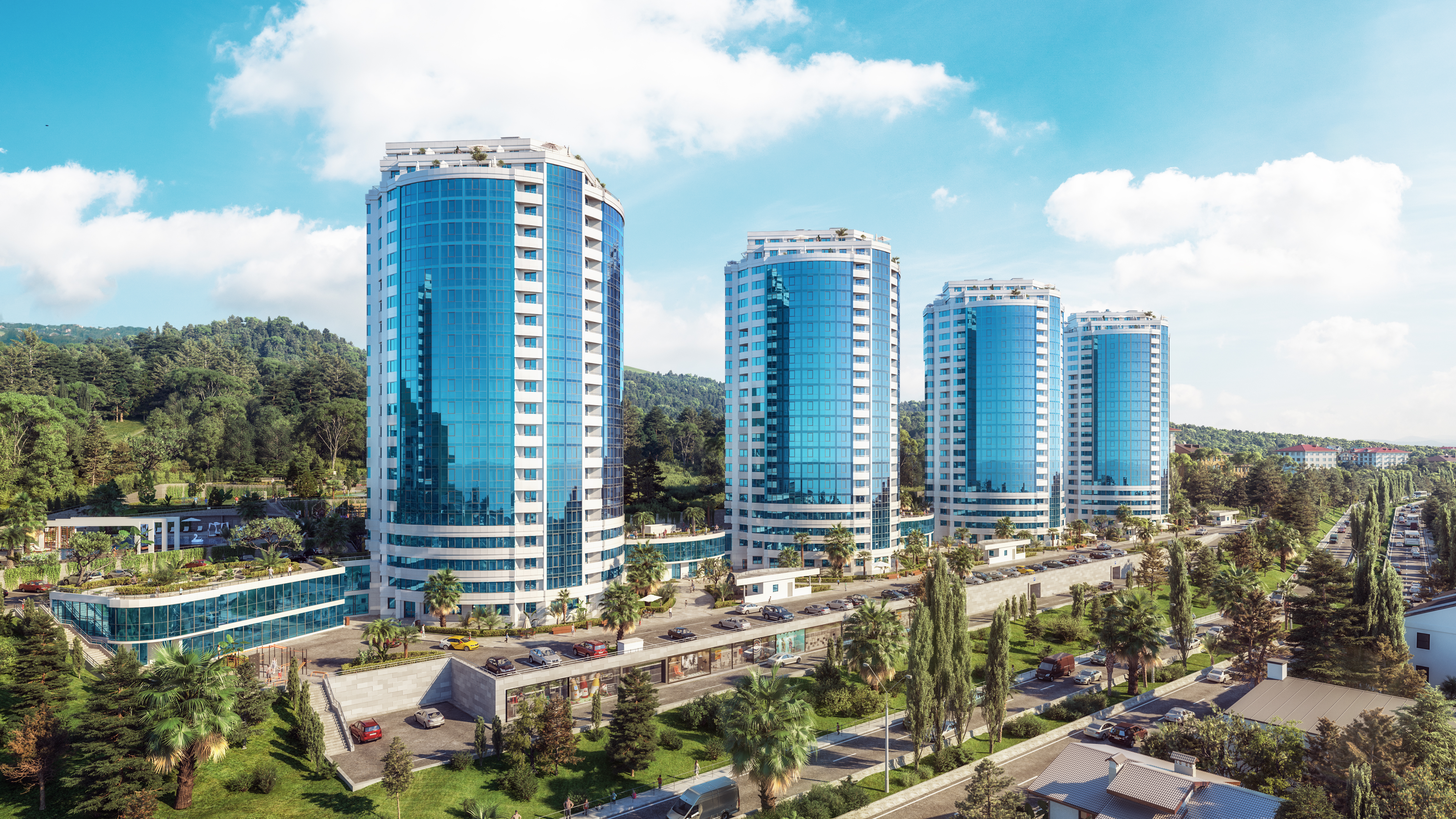 В каждом доме 21 жилой этаж‚ подземная автопарковка и коммерческая недвижимость. На территории комплекса будут расположены современный открытый бассейн с зоной отдыха, 2 теннисных корта, универсальная спортивная площадка для игры в футбол, баскетбол, волейбол.
