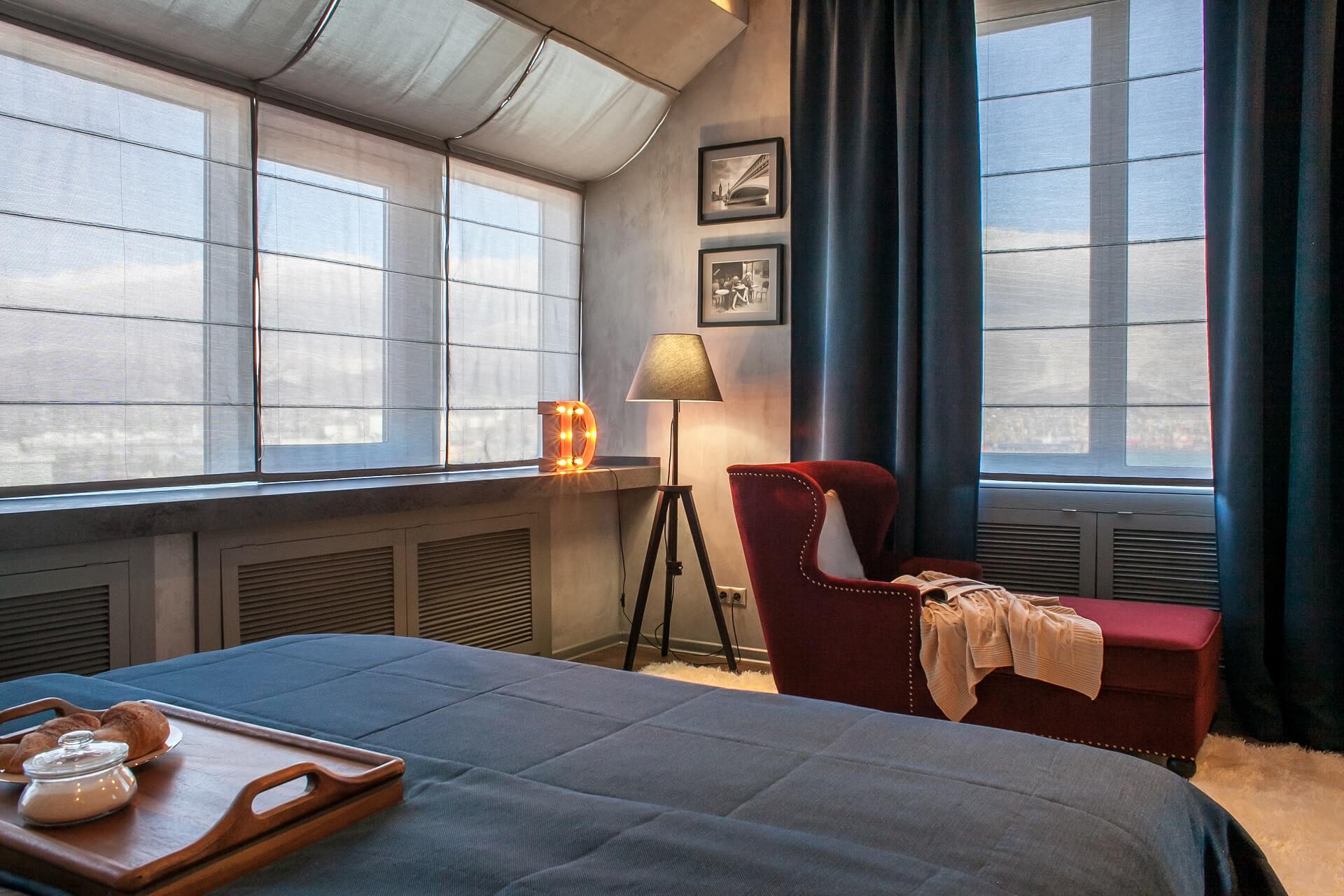 3-комнатная квартира с панорамным видом на Чёрное море расположена в самом центре Сочи, в 5 минутах до центральной набережной. Особенностями квартиры являются открытая планировка, высокий потолок и множество окон.